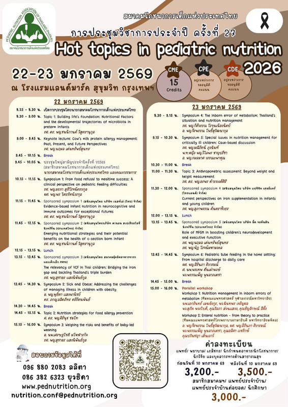 การประชุมวิชาการประจำปี ครั้งที่ 27 Hot Topics in pediatric nutrition 2026